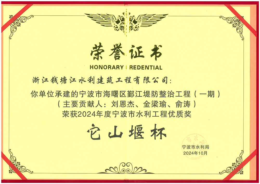它山堰杯荣誉证书